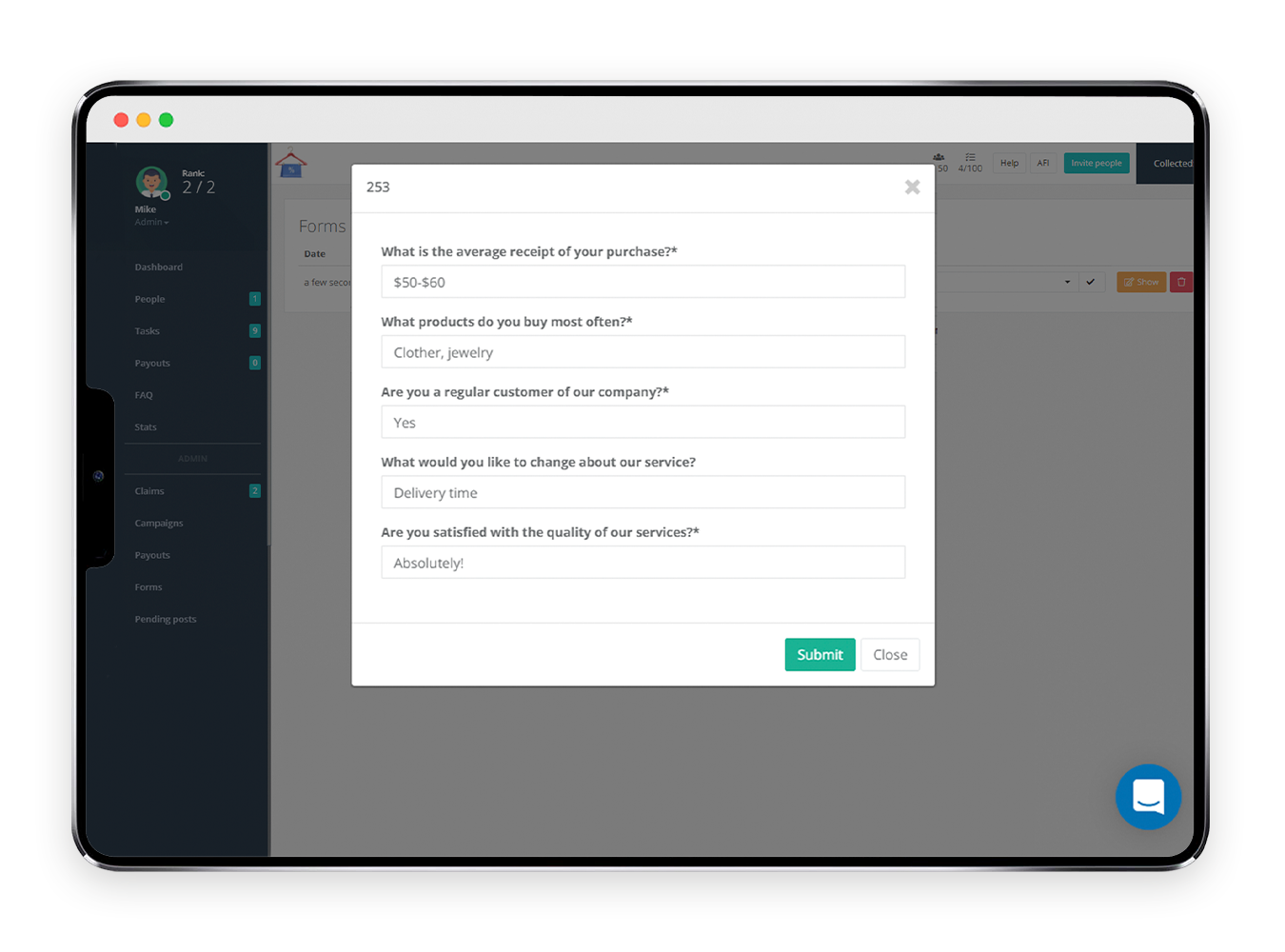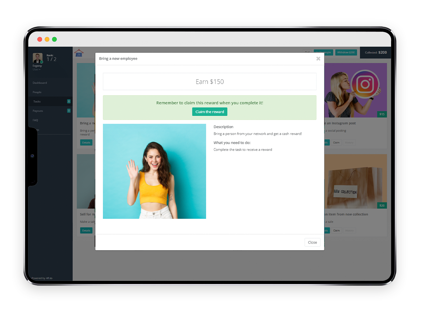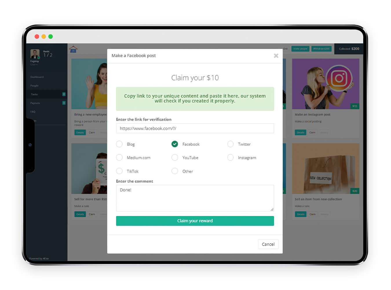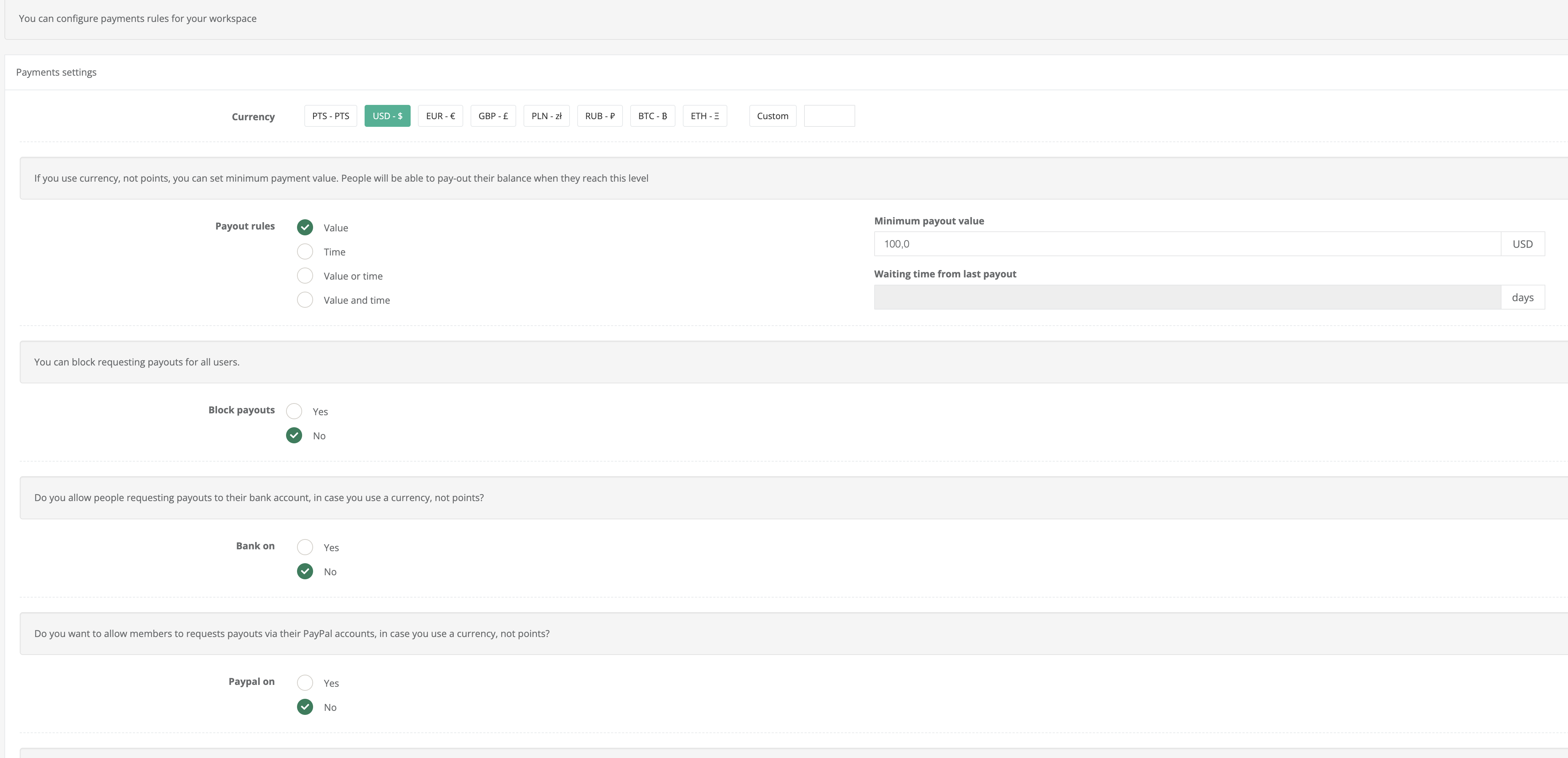 It depends on you. You can build a system based on collecting points but also on normal currency that you pay out. To facilitate this, we have built KYC tools to collect information about people in the system.