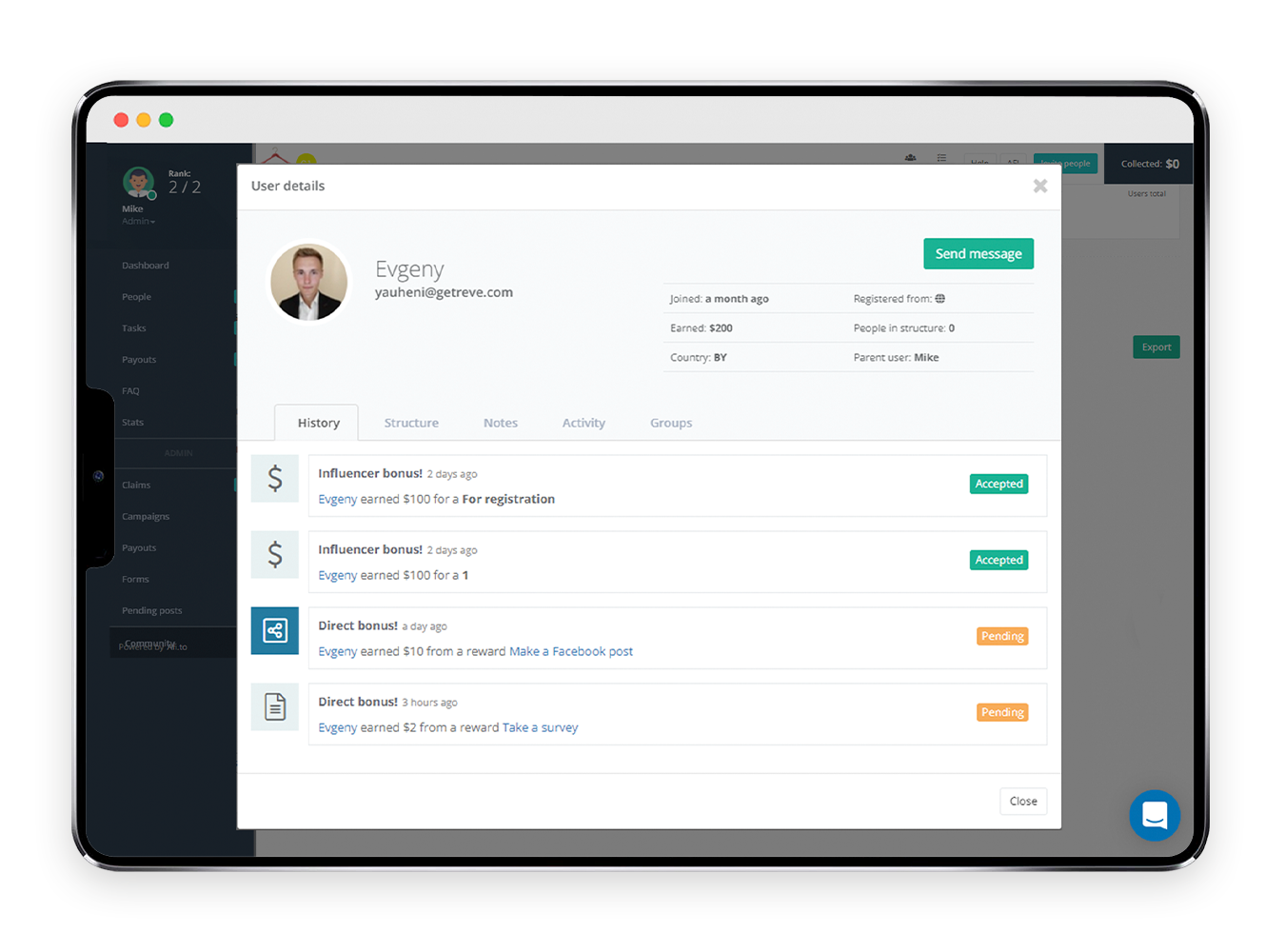 This tool allows you to control everything to make the program effective: fraud detection, budgets, limits, statistics, payments, deliveries, data privacy and more. Finally, it can run under your domain.