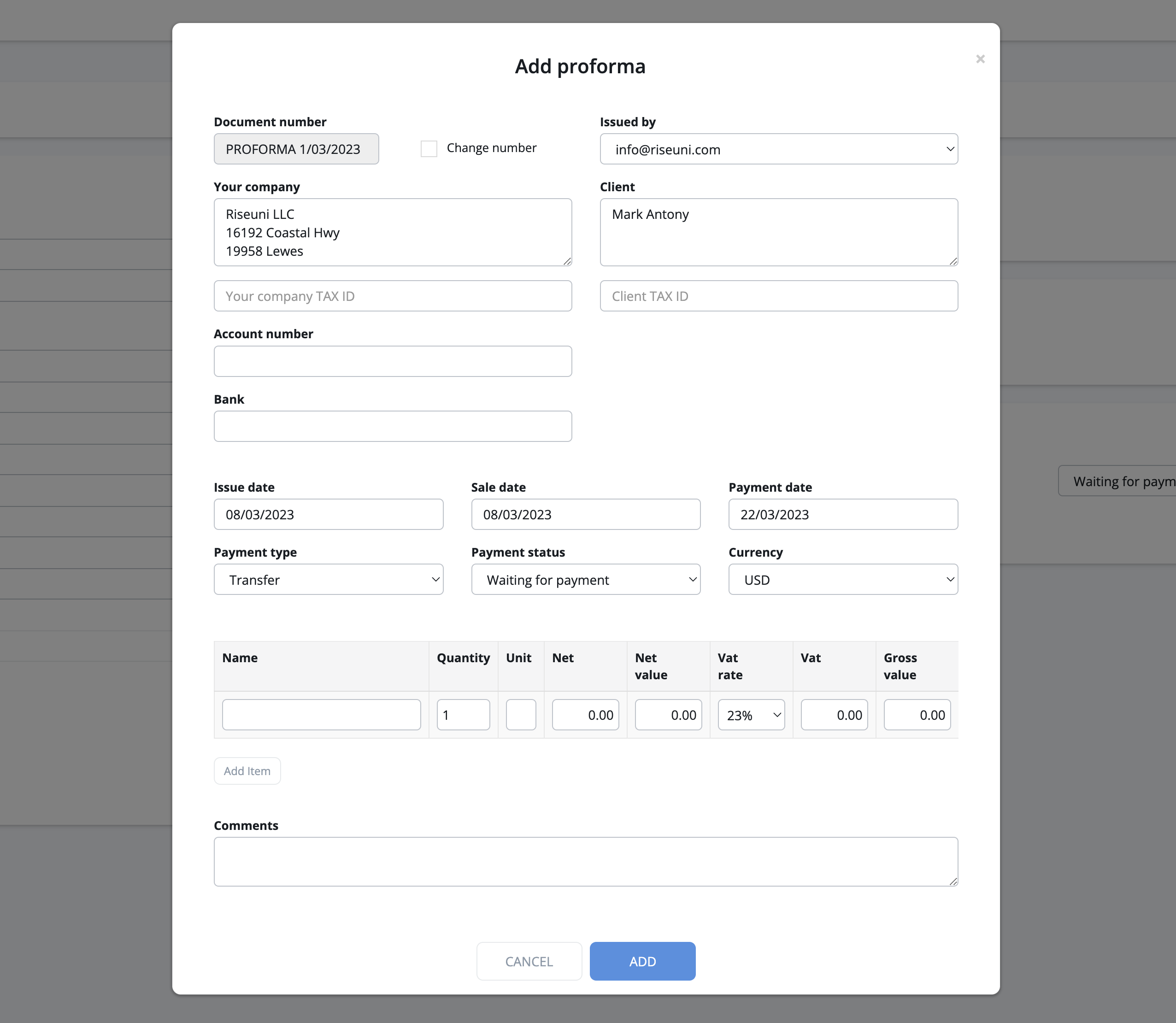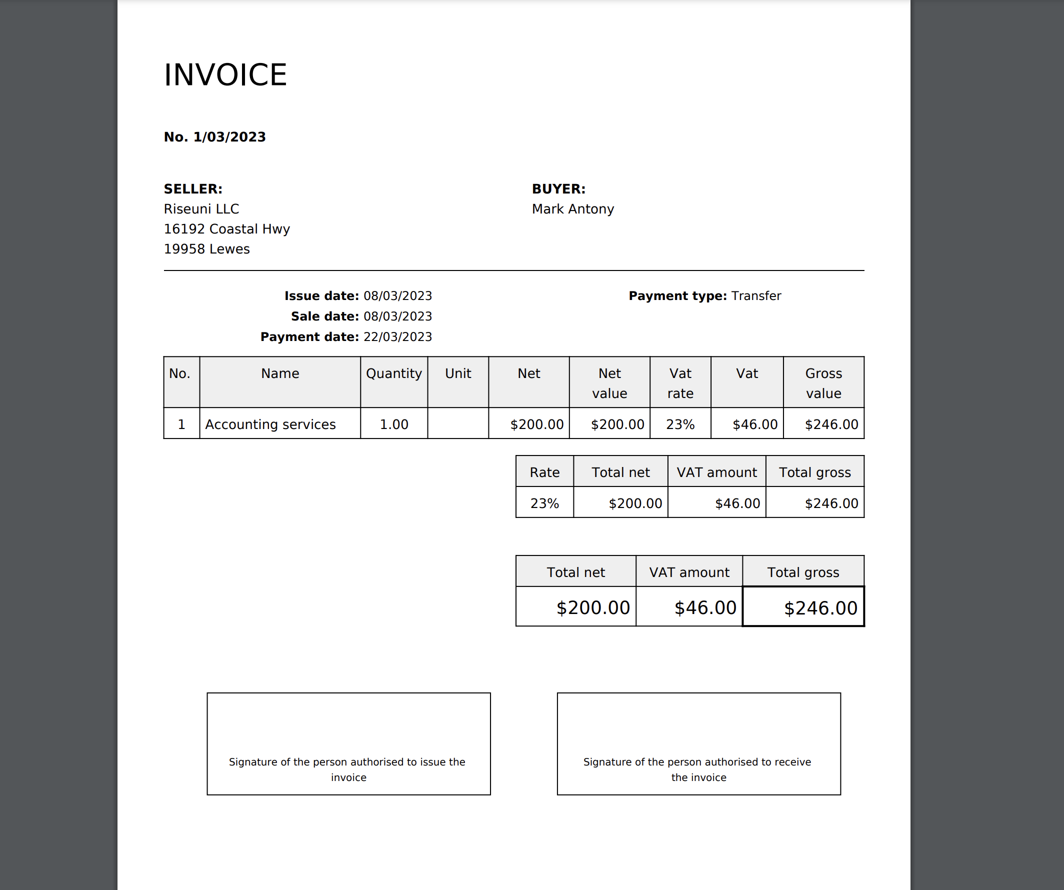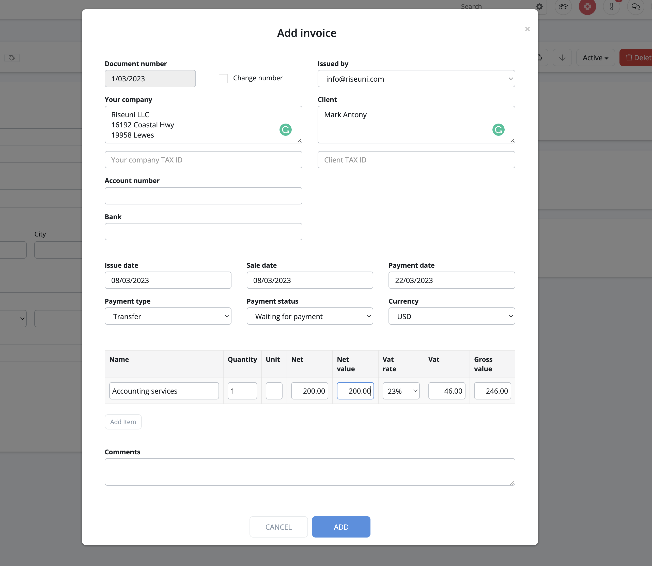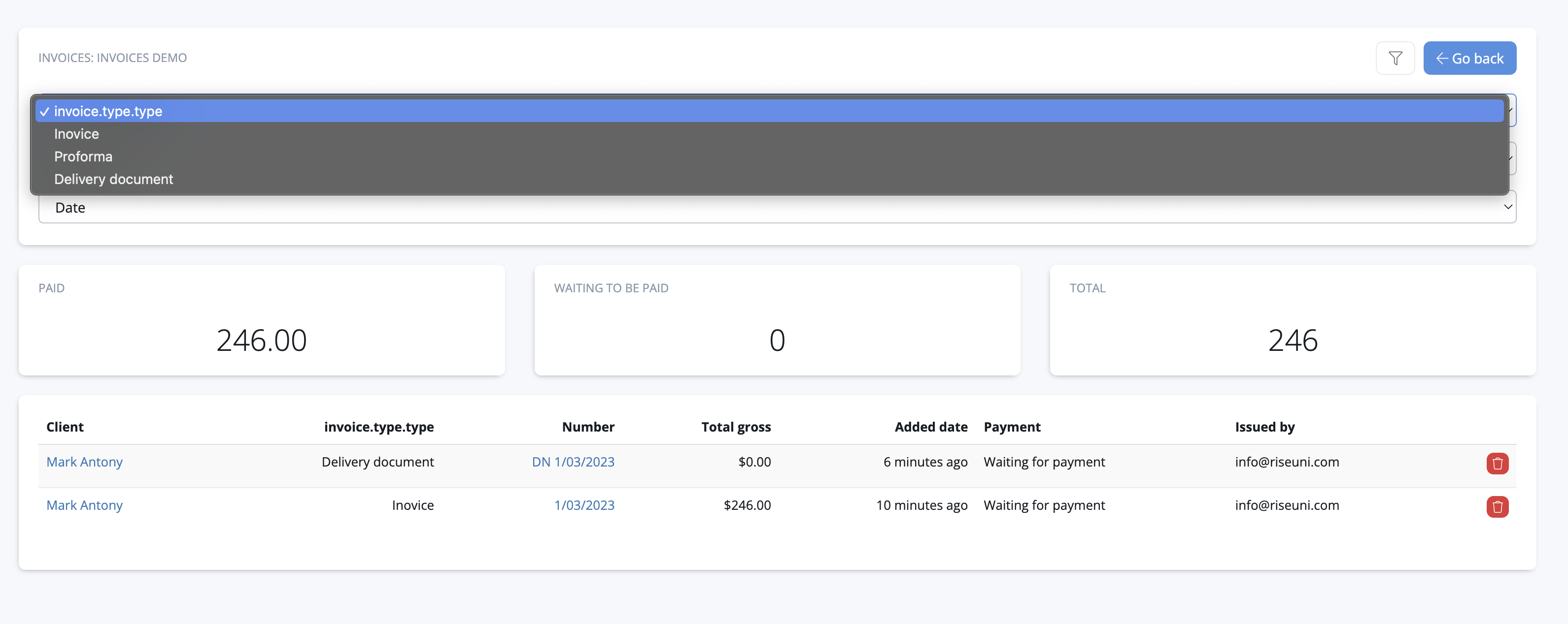 Create invoices, generate PDF files, control payment status and to-do lists on the invoice